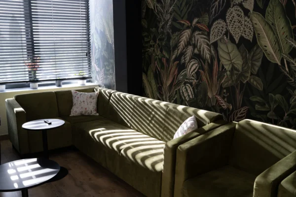 Strefa relaksu z konsolą, tenisem stołowym i fotelem masującym